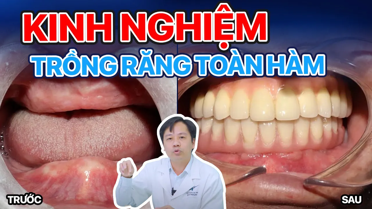 Video của Nha khoa Lạc Việt Intech trình bày 5 kinh nghiệm trồng răng implant toàn hàm. Nội dung chính xoay quanh số lượng trụ implant cần thiết (4, 6 hoặc 8 trụ, tùy thuộc vào cấu trúc xương và cung hàm), cấu tạo của răng toàn hàm (bao gồm trụ implant và hàm sứ, với các loại hàm như hàm chrome, i3, và timble được đề cập), yếu tố quyết định chất lượng (chất lượng trụ implant, loại hàm sứ, và kỹ thuật thực hiện, bao gồm cả công nghệ CAD/CAM), chi phí (từ 79 triệu đến 350 triệu, tùy thuộc vào vật liệu và công nghệ), và các trường hợp chống chỉ định (bệnh lý toàn thân, tiêu xương nhiều, và điều kiện tài chính). Video nhấn mạnh tầm quan trọng của việc lựa chọn vật liệu và kỹ thuật chất lượng cao để đảm bảo độ bền và thẩm mỹ lâu dài.