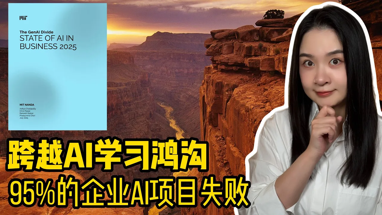这一部分主要介绍了麻省理工学院的研究报告,指出95%的企业AI项目失败。 这部分信息较为清晰,是视频的核心论点。