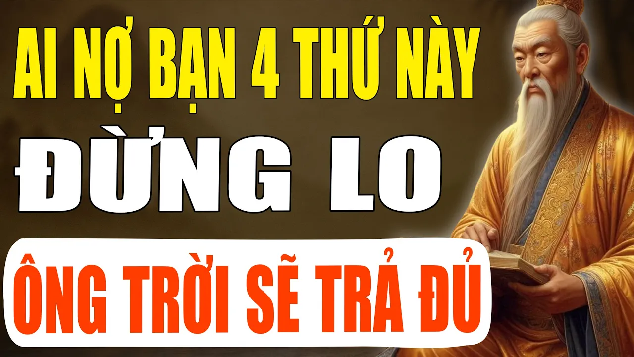 Video “Cổ Nhân Tiết Lộ: NGƯỜI KHÁC NỢ BẠN 4 Thứ Này ÔNG TRỜI SẼ TRẢ ĐỦ Cho Bạn | Tinh Hoa Cổ Xưa” bàn về quan niệm nhân quả trong văn hóa truyền thống. Video nêu lên 4 “món nợ” mà người khác có thể nợ bạn: tiền bạc, lời mắng nhiếc, tình cảm bội bạc và lời phàn nàn oán trách. Video cho rằng, nếu giữ tâm ngay thẳng, sống thiện lương, ông trời sẽ “trả đủ” cho bạn, không phải bằng cách trả lại những gì đã mất, mà bằng những phúc báo khác. Video cũng đề cập đến 9 con đường tu dưỡng bản thân để chuyển hóa những “món nợ” này thành phúc báo, bao gồm tu nhẫn nại, khoan dung, lễ nghĩa, khiêm cung, tín nghĩa, hiếu đễ, chính khí, tĩnh tâm và từ bi. Các câu chuyện dân gian và triết lý từ Khổng Tử, Mạnh Tử, Lão Tử được sử dụng để minh họa cho các quan điểm này. Ứng dụng của video là hướng dẫn người xem sống thiện, tích đức, tin vào nhân quả và tu dưỡng bản thân.